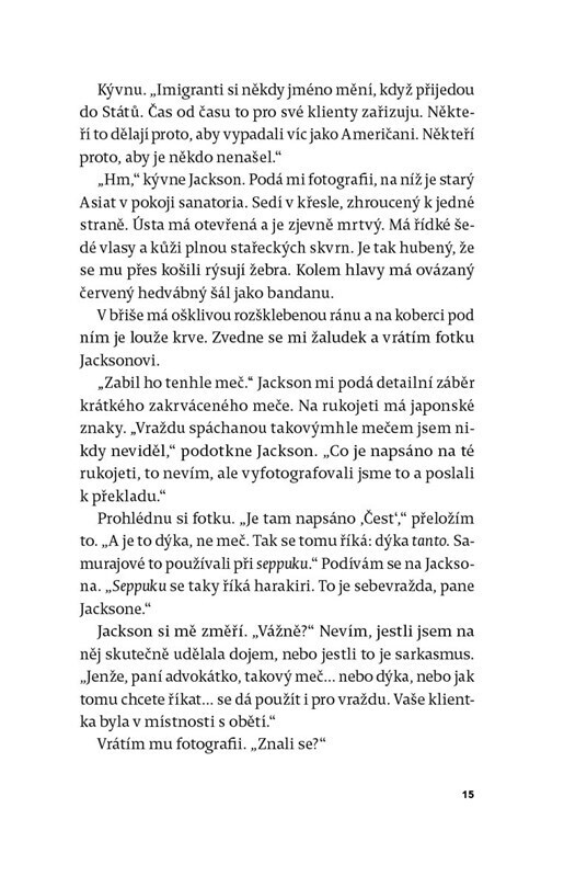 Annu Carlsonovou, Američanku s korejskými kořeny, tentokrát přizvou k vyšetřování smrti japonského starce. Podezřelou je téměř stoletá Korejka, která se chce se svým příběhem svěřit právě a jen Anně. V jejím vyprávění ožívá okupovaná Korea 30. let. Dívka je přinucena vzít si Japonce Hitašiho,...