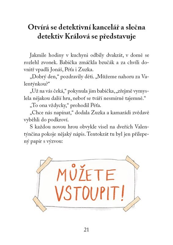 Valentýnčin tatínek se v novinách dočte, že z kostela v nedaleké vesnici se ztratily sochy andělů. Právě tato krádež dívence vnukne nápad na novou hru – spolu s kamarády si založí detektivní kancelář a rozhodnou se zloděje vypátrat. Všichni se vypraví do centra města, kde na náměstí pozorují...