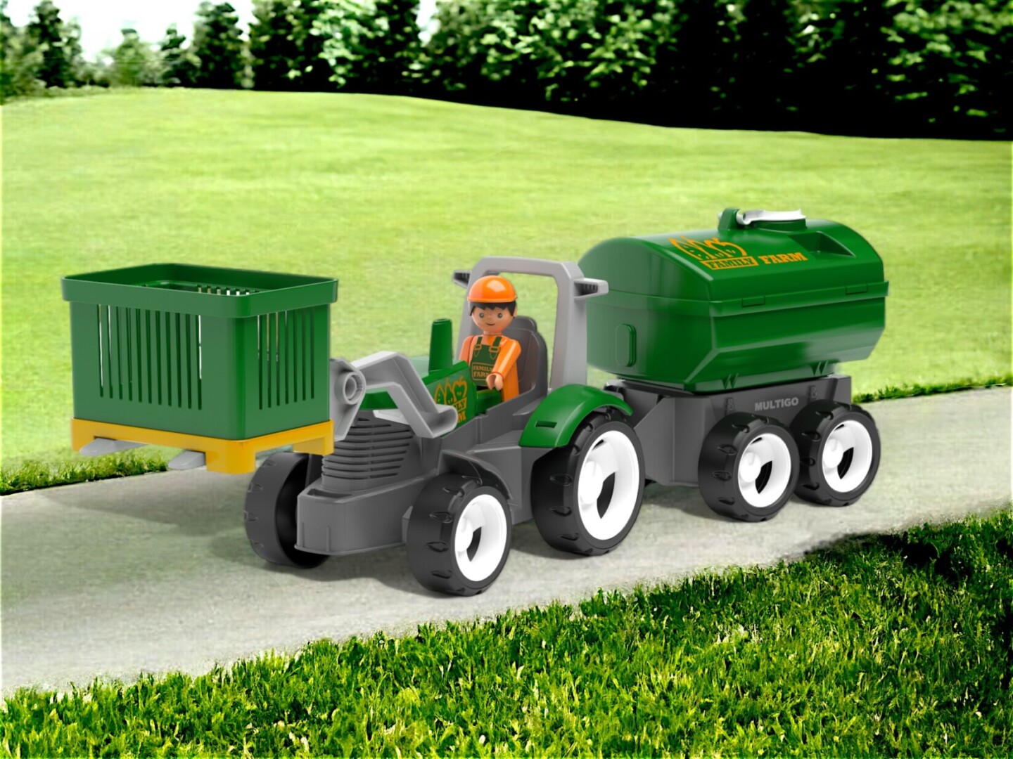 Igráčky je možno posadit do traktoru. • MultiGO je vhodné pro hraní doma i venku na hřišti - snadno omyvatelné.