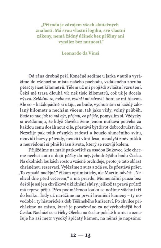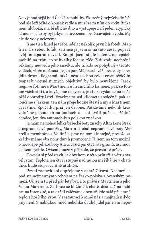 Autor se vydává z nejvýchodnějšího bodu naší vlasti u Mostů u Jablunkova do bodu nejzápadnějšího u Aše. Překonává téměř 20 tisícimetrových vrcholů a musí se vypořádat s rozmary počasí i s řadou překážek. Zároveň potkává skvělé lidi, kteří mu nejednou nabídnou pomoc. Cesta mu přináší hluboké...