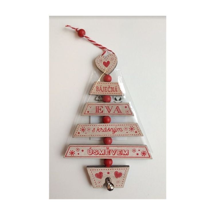Dřevěná ozdoba na stromeček se jménem.