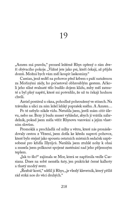 Feyre překonala překážky, které jí bránily k návratu na Jarní dvůr. Ovšem za příliš vysokou cenu. Dle dohody musí trávit vždy část roku u Rhysanda, knížete Půlnočního dvora. A ač je nyní nesmrtelnou vílou, její srdce je stále lidské, a ona se tak musí rozhodnout, komu vlastně patří její...