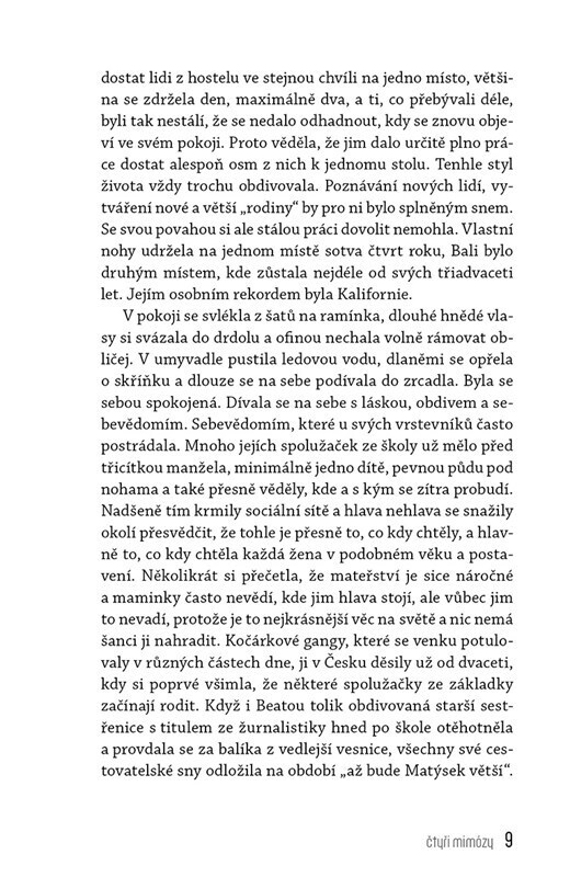Kniha o přátelství, lásce, životě a jeho nevyzpytatelných nástrahách. Cestovatelka Beata, sebevědomá Karolína, milující Talia a knihomolka Františka. Čtyři osobnosti, každá jiná. Navzdory tomu, že každá vede naprosto odlišný život, jsou jejich vztahy napříč lety pevné. Vydrží síla přátelství...