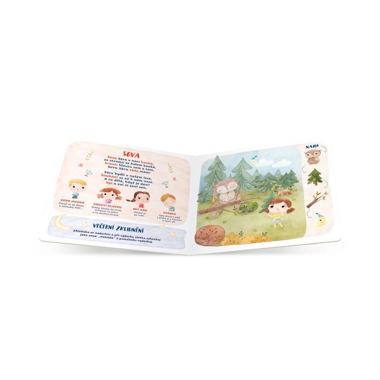 Dětská knížka básniček, ke kterým se navíc pojí jednoduchá pohybová gesta, jež děti zklidní a připraví na usínání. Pro děti od 2-5 let.