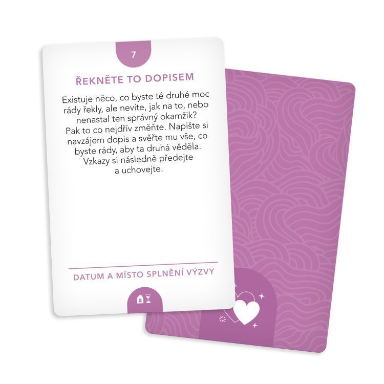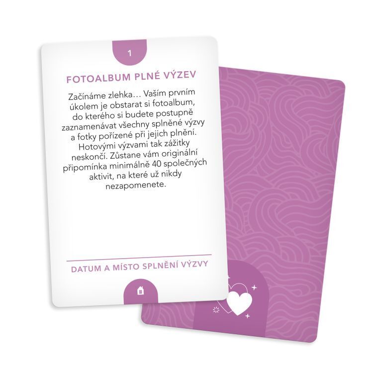 Balíček obsahuje 40 výzev pro maminky a dcery všech věkových kategorií. Karty jsou pak rozděleny do 3 kategorií – na doma, na ven a univerzální. Hra Karetní výzvy - Pro maminku a dceru obsahuje: 40 karet výzev, 5 karet bonusových výzev, 1 vzorovou kartu a pravidla pro plnění výzev, 1 kartu s...