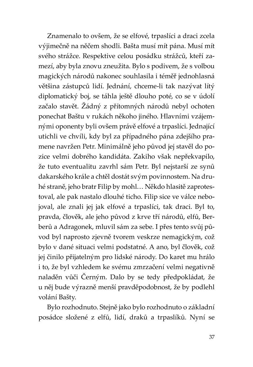 Bašta je zničena a její pán mrtev. Bujaré oslavy ještě neutichly a troskami už znovu zní hukot magického náboje. Nikdo mu však nenaslouchá. Jen Strážci jsou neklidní. Válka poodkryla pečlivě opatrované tajemství pramenů moci, posvátného Karganu. Elena svou existencí narušila jejich systém, ale...