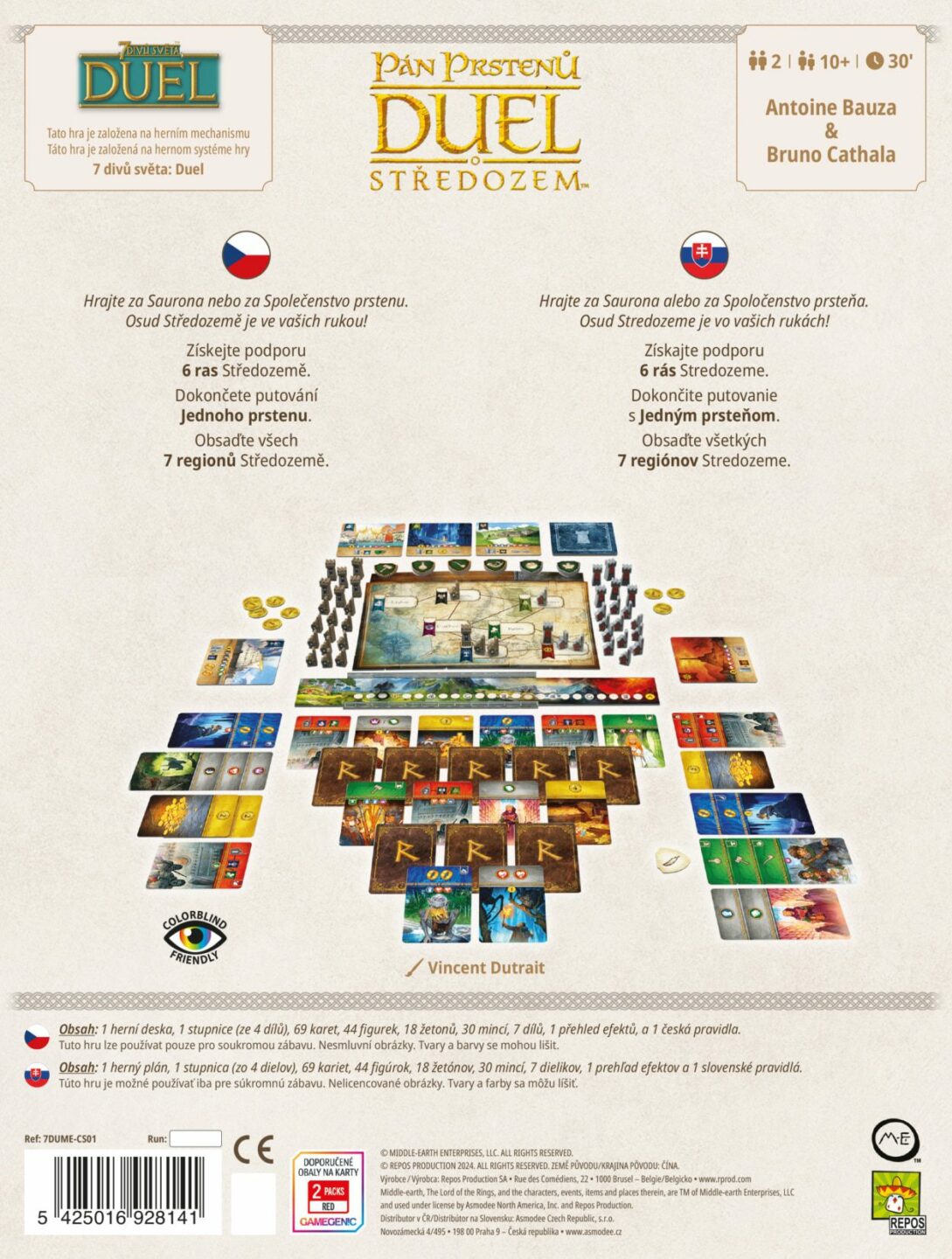 obsaďte Středozemi. Obsah balení: 1 herní deska 1 stupnice putování Prstenu (ze 4 dílů) 69 karet, 44 figurek 18 žetonů 30 mincí 7 dílů lokací 1 přehled efektů česká a slovenská pravidla