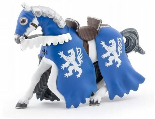 Kůň modrý pro rytírě s kopím modrý štít se lvem