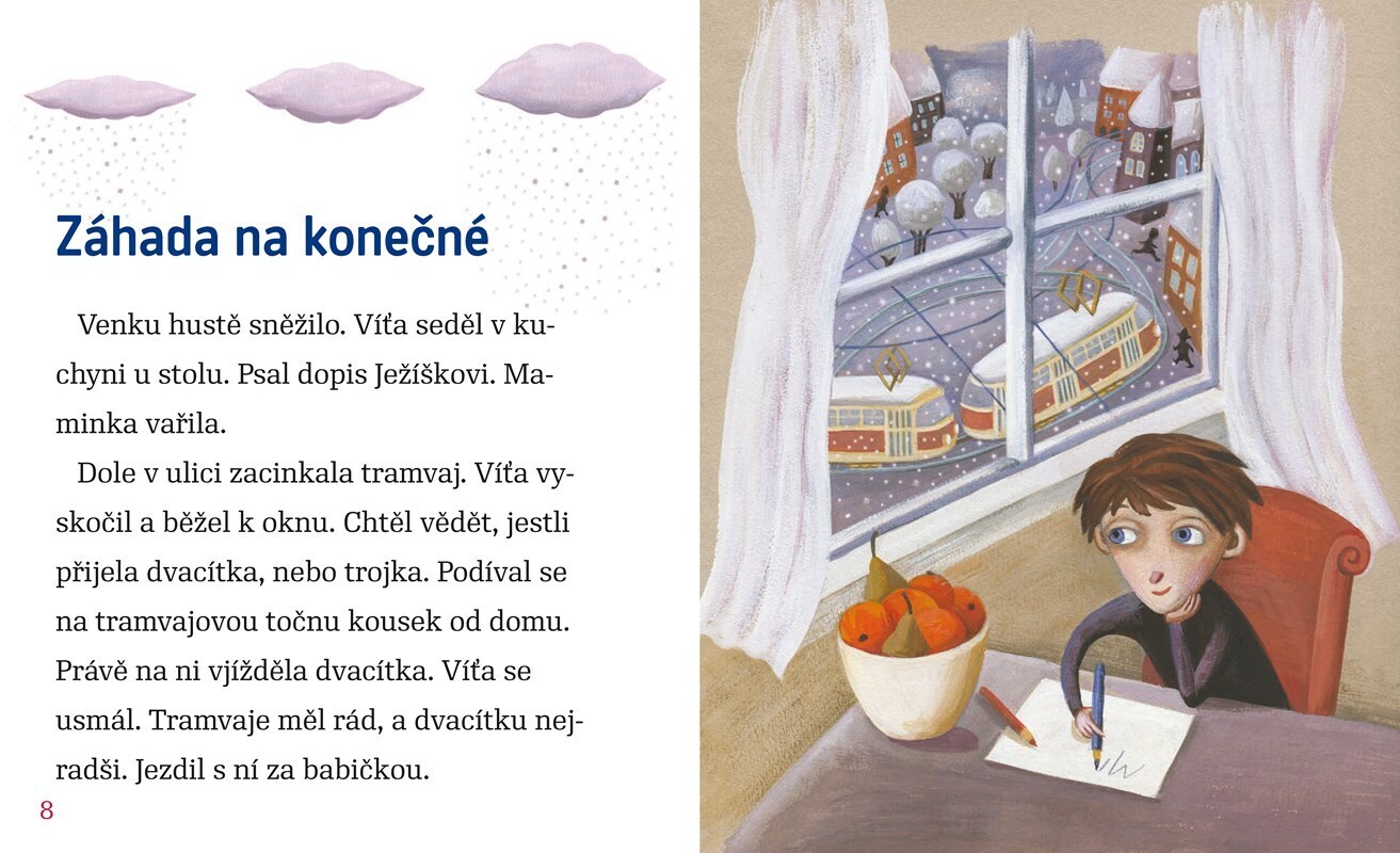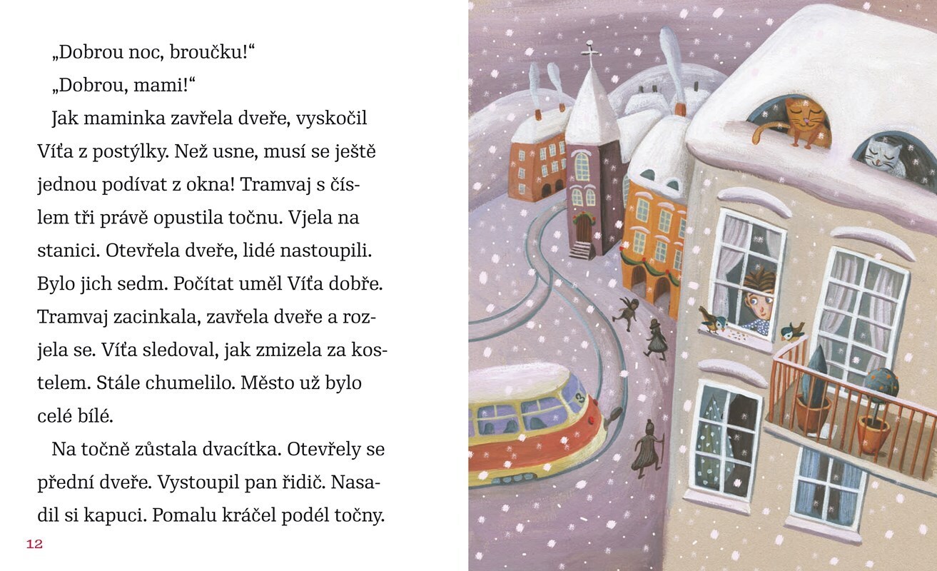 Venku sněží, prvňáček Víťa se těší na Ježíška a na tatínka, který se vrací domů z daleké ciziny. Vánoce oslaví všichni tři spolu! Večer, než Víťa usne, ještě vyskočí z postýlky, aby se podíval na konečnou stanici pod okny. Víťa má totiž rád tramvaje – a zrovna jedna přijíždí! Když zastaví, pan...