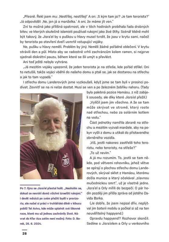 Je 6. října před půlnocí a válečný zpravodaj David Borek leží v hotelové posteli v Kyjevě. Usíná a hlavou mu víří zcela všední myšlenky… O den později se však probouzí do brutálního rána. Teroristé Hamásu napadli Izrael a rozpoutali nejhorší masakr v dějinách státu. Už nic nebude jako dřív....