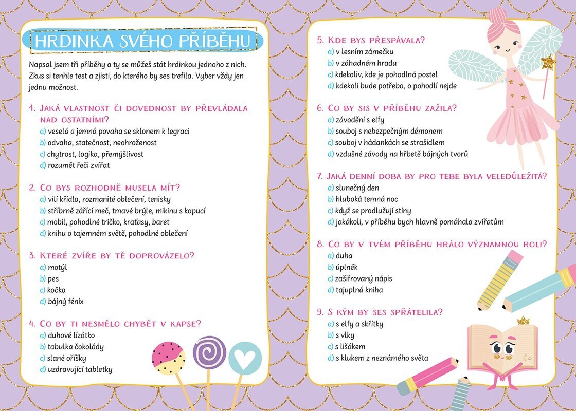 Spousta her a zábavy pro tebe a tvé kamarádky! Vyberete si svého zvířecího kamaráda, tajemný magický kamínek, prožijete barevné bláznění, zahrajete si na čarodějky a pobavte se nad horoskopy. Nebo si třeba udělejte test, mezi jaké superhrdiny patříte!
