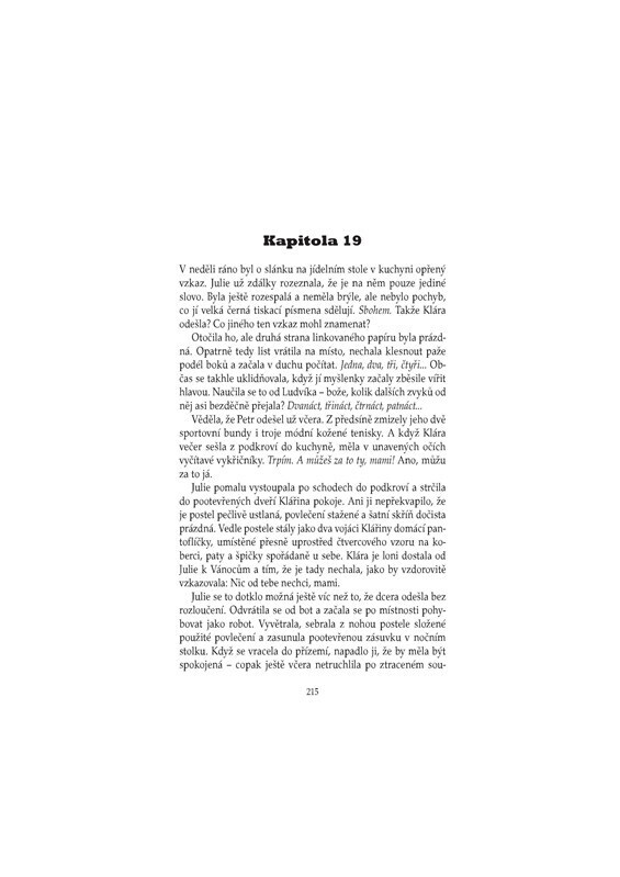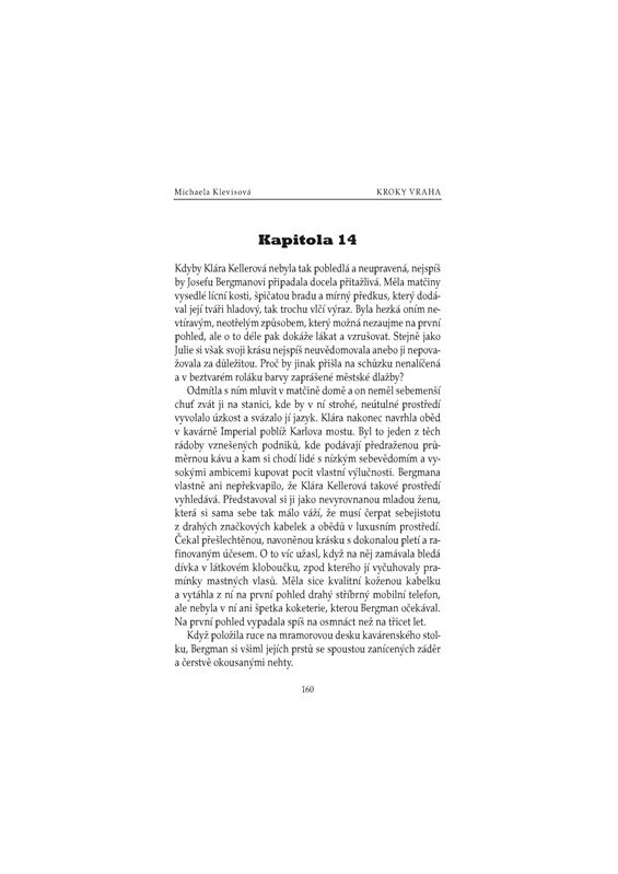 V pražském lesoparku byla v noci uškrcena mladá žena. Novinářka Julie Kellerová je zřejmě poslední, kdo s ní před vraždou mluvil. Oběť se navíc nápadně podobala její dceři Kláře. Byla to náhoda, nebo měl vrah spadeno na někoho jiného? Sympatický inspektor Josef Bergman rozkrývá složitý hlavolam...
