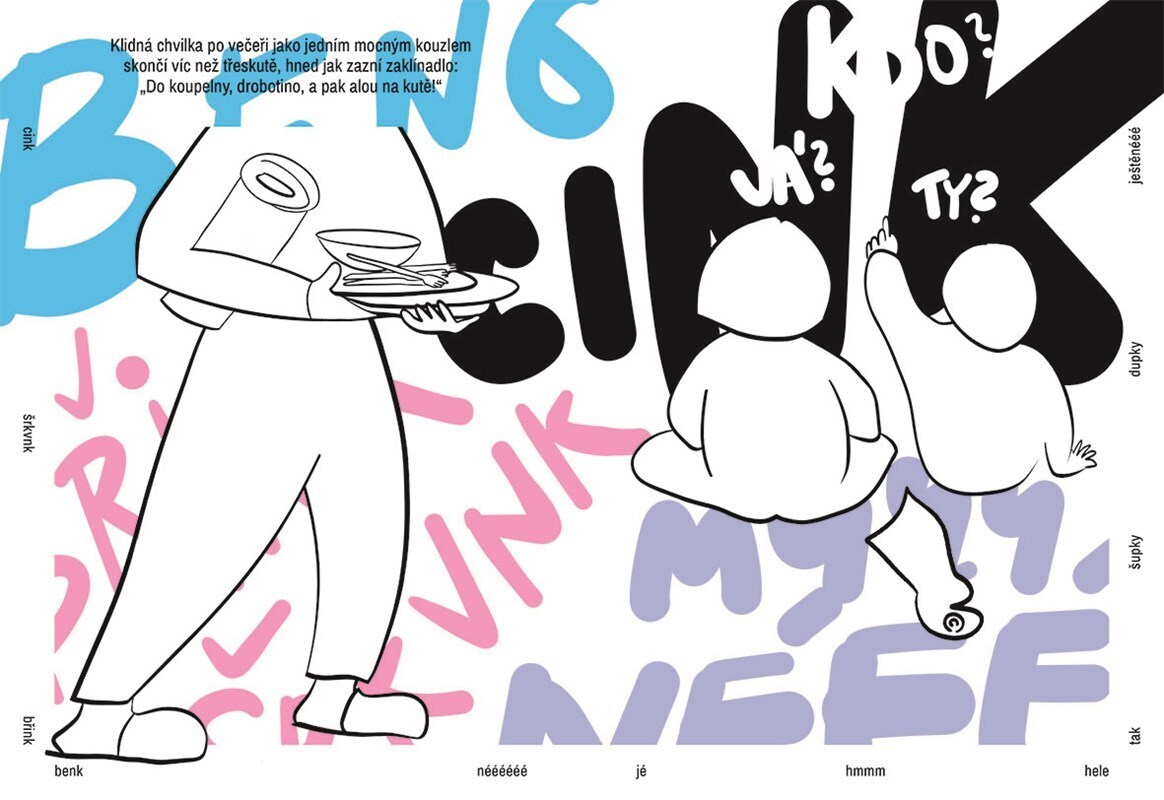 Mezi večeří a uspáváním se toho vždycky stane víc, než je v plánu. Propukají závěrečná dobrodružství dne, hraje se na všechno možné (i na nervy) a přitom se děti mění v nepoznané bytosti. Některé zmizí, jakmile je rodič zahlédne, jiné se zrodí proto, aby se rodič díval. Knížka o kouzlech...