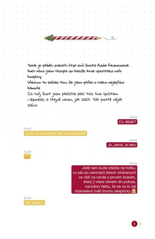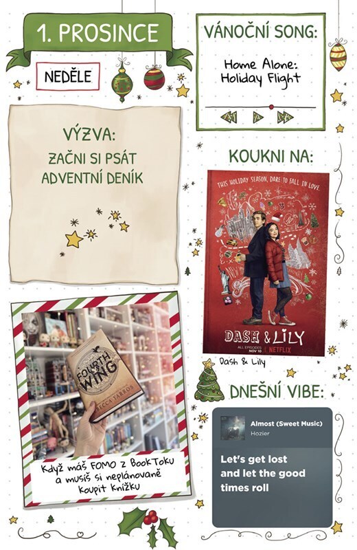 Pro Addie jsou Vánoce nejlepší část roku, letos to ale vypadá na propadák. Máma s tátou jsou pryč, nejlepší kámoš se stěhuje, navíc ji pomlouvá půlka školy. Jenže 1. prosince se stane něco, díky čemu dá svátkům ještě šanci: dostane adventní kalendář plný úkolů a potkává Jaxona, který se měl...