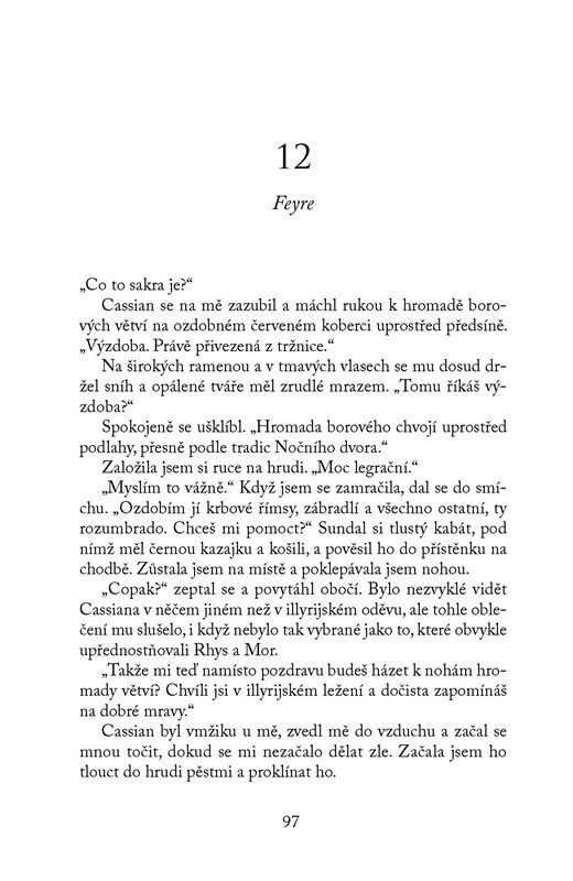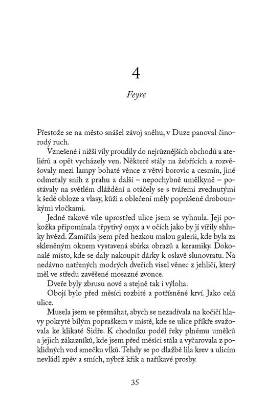 Feyre, Rhysand a jejich nejbližší přátelé pracují na obnově Nočního dvora i válkou zničené země. Ačkoli lidské královny i vílí vládci kují pikle, ve Velarisu alespoň na chvíli nastala sváteční atmosféra. Blíží se totiž oslavy zimního slunovratu. A právě v okamžicích klidu a míru se ukáže, že...