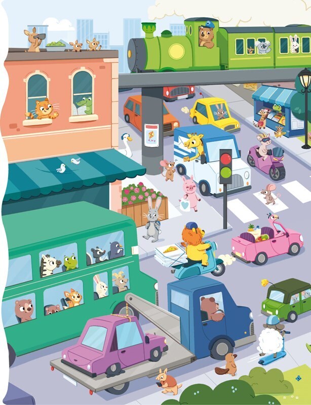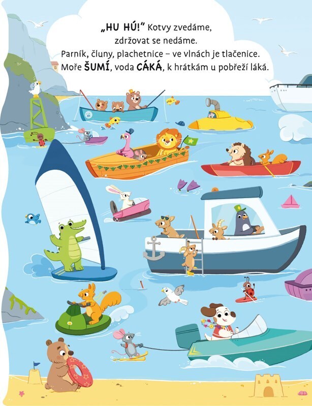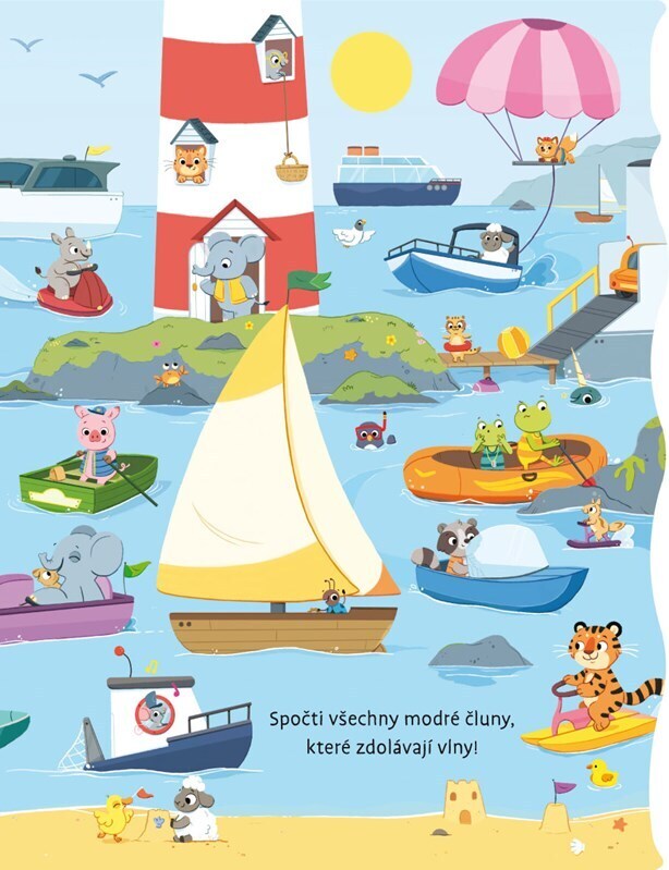 Vzhůru do rušných ulic měst plných aut, na staveniště mezi velké stroje nebo do mořských vln plných plavidel! Jaký zvuk vydává auto, náklaďák, parník, raketa nebo třeba kolotoč? Stačí postupně stisknout všechna tlačítka a ozve se houkání sanitky, rachot vrtulníku nebo třeba zacinkání jízdního...