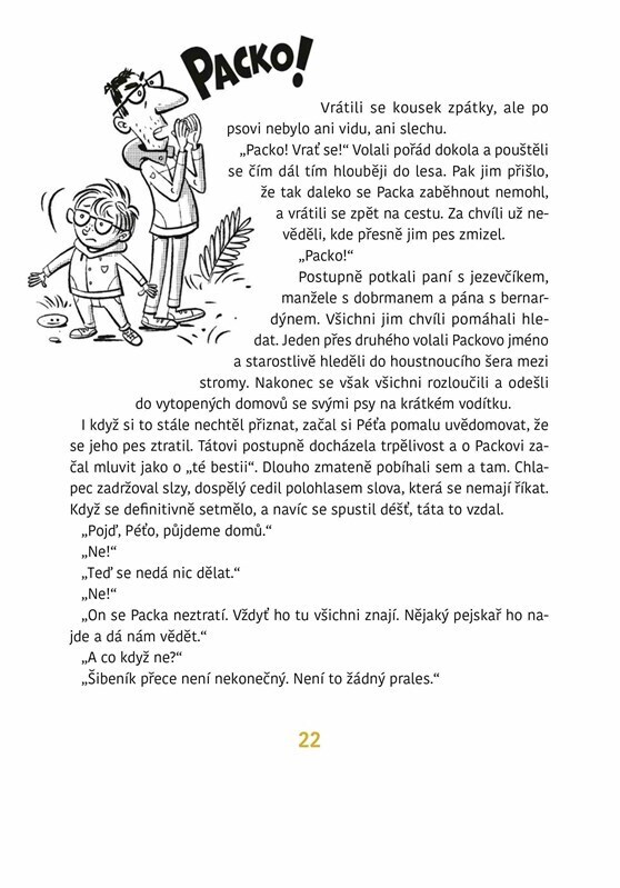 Šestiletý Péťa to má vážně těžké – nikdo ho nebere vážně. Nosí brýle, je trochu oplácaný a jeho spolužáci mu to při každé příležitosti připomínají. Když se chlapec jednoho dne ztratí, celé město je na nohou! Péťa pátrá v hlubokém lese po svém psovi jménem Packa a prokáže při tom odvahu, jakou by...
