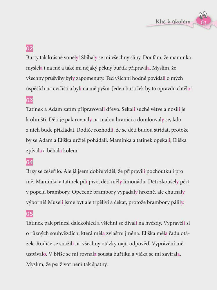 Použili jsme pravopisné oříšky v příbězích psa Evžena. Děti jsou na jeho další kousky zvědavé, proto pak k psaní diktátu necítí nechuť. Buď můžete dítě nechat v první části doplnit chybějící písmena, nebo mu text podle klíče v závěru nadiktovat. Knížka je vhodná pro procvičování pravopisu ve...