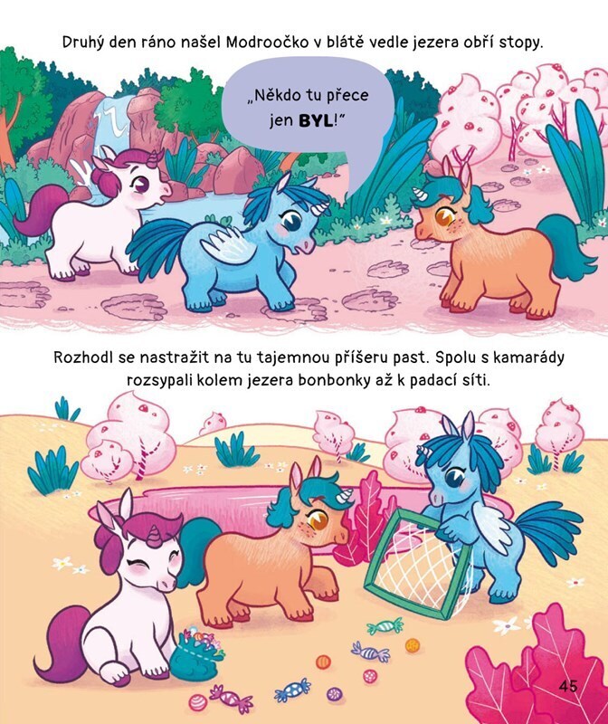 Sedmero krátkých pohádek – pro každý den v týdnu jedna - pozve děti do kouzelného světa jednorožců. Malí čtenáři v nich spolu s jednorožci zažijí například nevšední setkání s dinosaury, chumelenici ve škole či velkou soutěž o nejlepší dort. Předčítání z knížky plné kouzel a milých jednorožců...