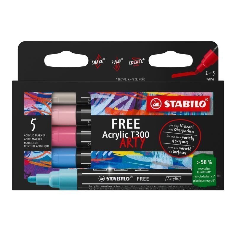 Akrylový popisovač STABILO FREE Acrylic - kulatý hrot 2-3 mm - sada Candy 5 ks