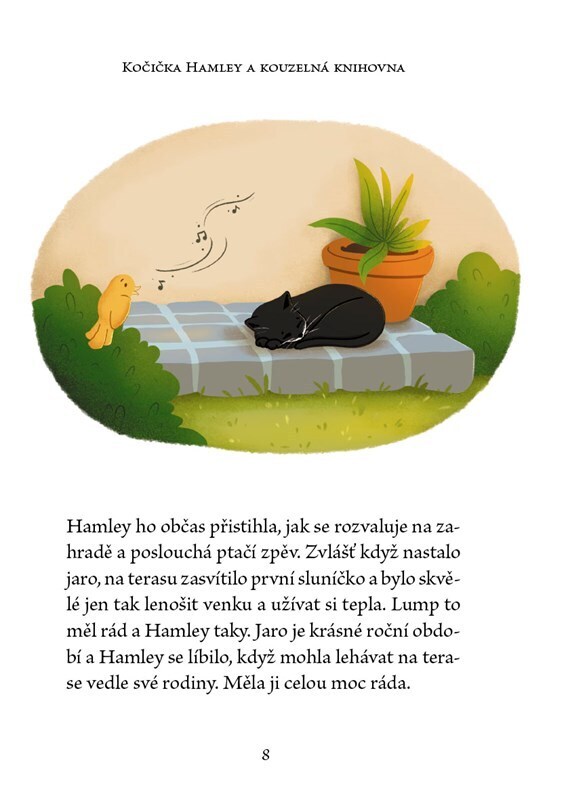 Kočička Hamley se v místní knihovně seznámí s černým kocourem Odinem. Ten jí prozradí, že se zde za úplňku scházejí všechny kouzelné černé kočky, které – stejně jako oni dva – rozumí řeči lidí. Může to být pravda? Nezbývá, než se tam spolu s maminkou vypravit. Podaří se Hamley odhalit všechny...