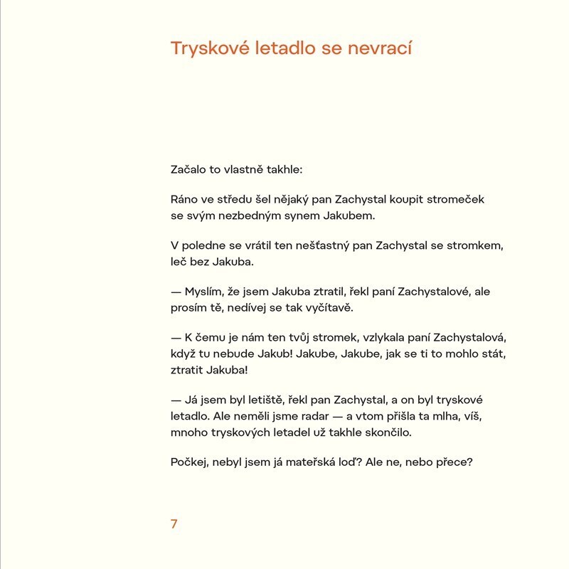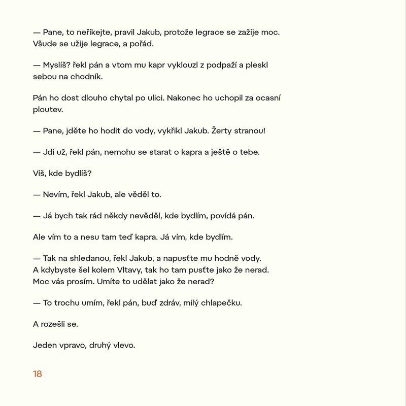 Ráno jde Jakub s tatínkem koupit stromeček. A najednou – tatínek nikde. Klučík ale nemá strach. Vždyť není tak docela sám. Nejprve se dá do řeči s pánem, který si nese domů kapra. Pak narazí na čerty, pomůže lampáři rozsvěcovat svítilny a dokonce si popovídá s koněm. Majitel onoho koně, pan...