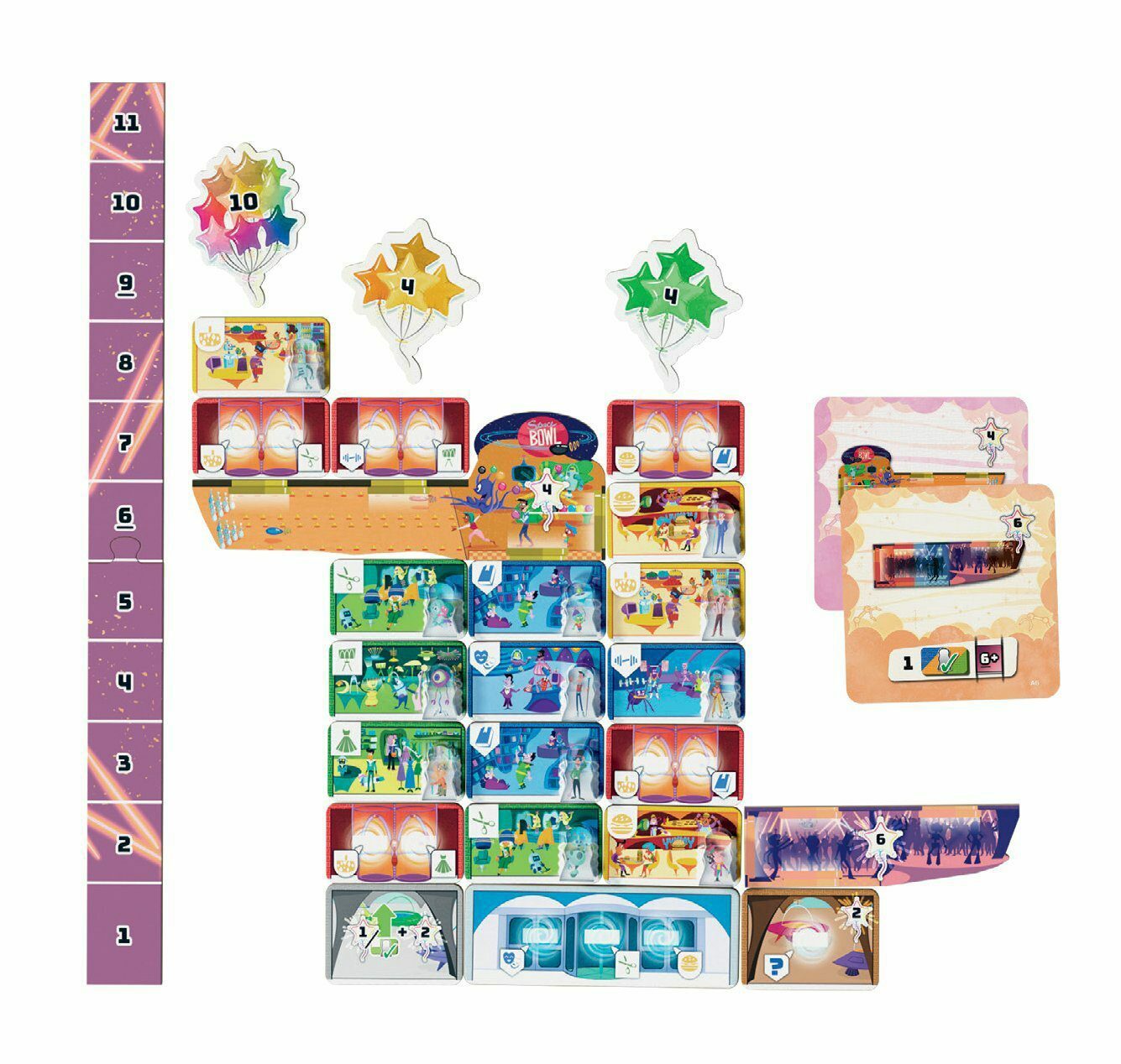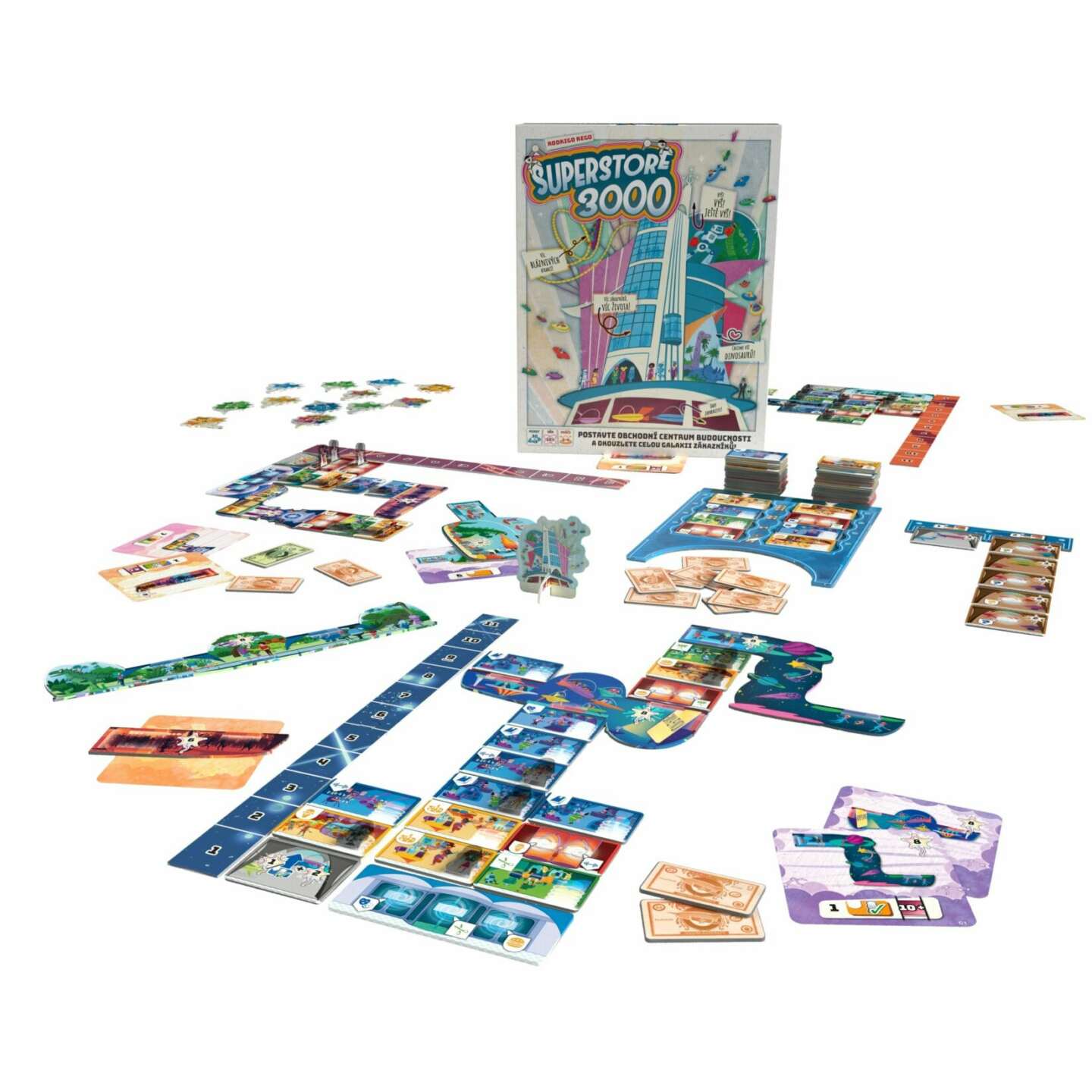 ZÁKAZNÍKŮ! Čím šťastnější budou, tím šťastnější budete i VY! VELKOLEPÉ! Splňte co nejvíce cílů, abyste postavili úžasné ATRAKCE! Obsah balení: 96 dílků obchodního centra 1 Výdejník 3000™ 56 zákazníků 16 karet atrakcí 14 dílků atrakcí 4 dílky hlavních vchodů