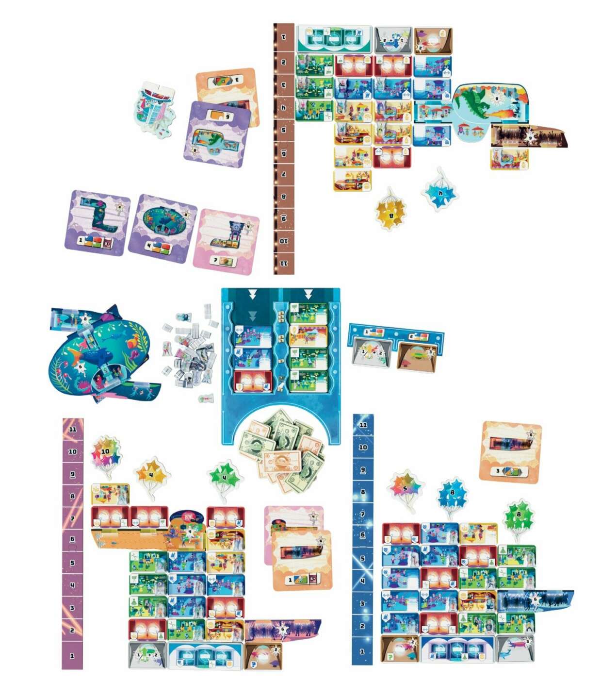 1 herní deska doků 8 dílků doků 12 dílků počátečních peněz 12 žetonů balónků 4 pravítka 1 stojánek prvního hráče česká a slovenská pravidla