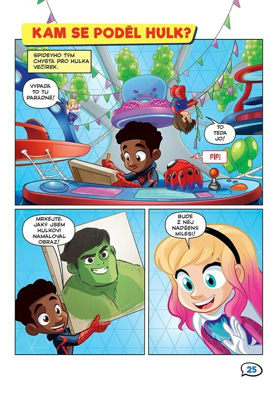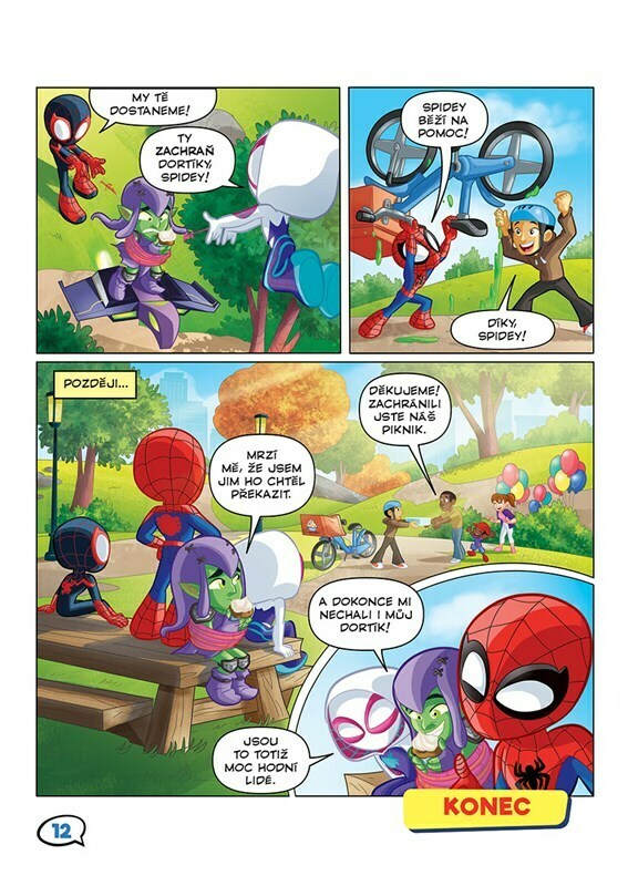 Oblíbení pavoučí hrdinové Spidey, Ghost-Spider a Spin už sviští do akce v komiksové knížce plné úžasných nových příhod! Na pomoc v napínavém boji s padouchy jim tentokrát přispěchají další odvážní superhrdinové Black Panther, Hulk a Ms. Marvel a společně zažijí spoustu skvělých dobrodružství. S...
