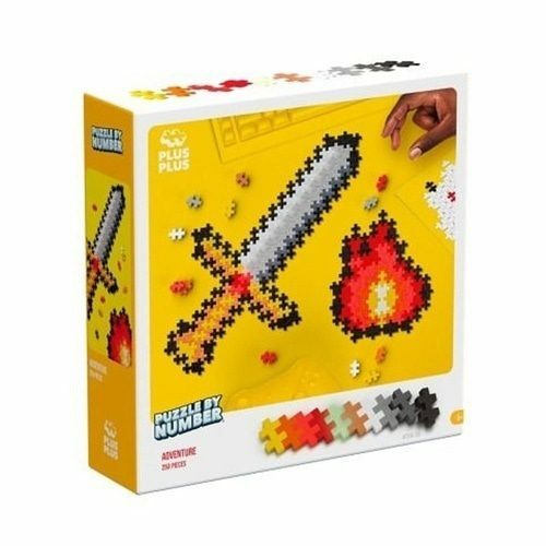 Kreativní sada PLUS-PLUS Skládej podle čísel Dobrodružství obsahuje 250 dílků. Postavte krásně barevné mozaiky meče a ohně, skládejte barvy podle čísel. Obrázky můžete využít jako dekorace nebo stavět nové vlastní vzory.