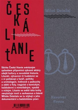 Sbírka Česká litanie svérázným způsobem připomíná vybrané aktéry zdejší kultury a novodobé historie. Literáti, výtvarníci či hudebníci se v ní potkávají s faráři, politiky a ornitologem, hrdinové s padouchy a oběti s fízly, tragické s komickým, každodenní s