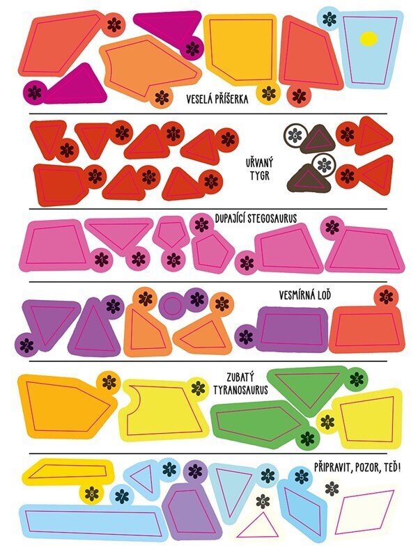 Dinosauři, roboti, auta, příšerky – to všechno tě v této knížce čeká spolu s 12 obrázky k dotvoření, stovkami samolepkových dílků, z nichž některé se krásně blýskají, a spoustou vybarvování i různých zábavných úkolů.