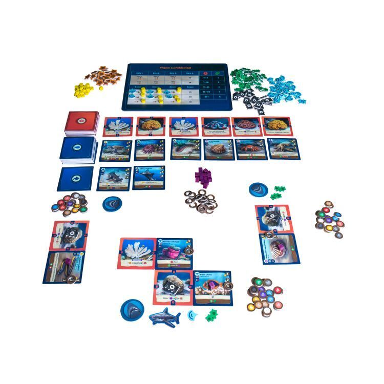 Vytvořte komplexní podvodní ekosystém a staňte se tím opravdovým zachráncem korálového útesu! Rodinná strategická hra pro hráče od 12 let. Hra obshauje: karty živočichů a korálových útesů, 3 typy žetonů surovin, 3 typy žetonů pro herní mechaniky, kolečka pro označení hojnosti, karty nápověd,...