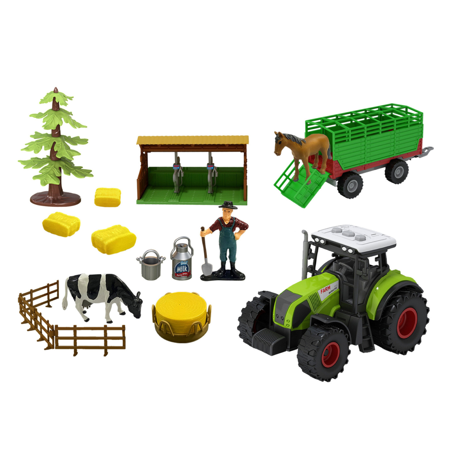 Traktor se zvukem a světlem s vlečkou a příslušenstvím