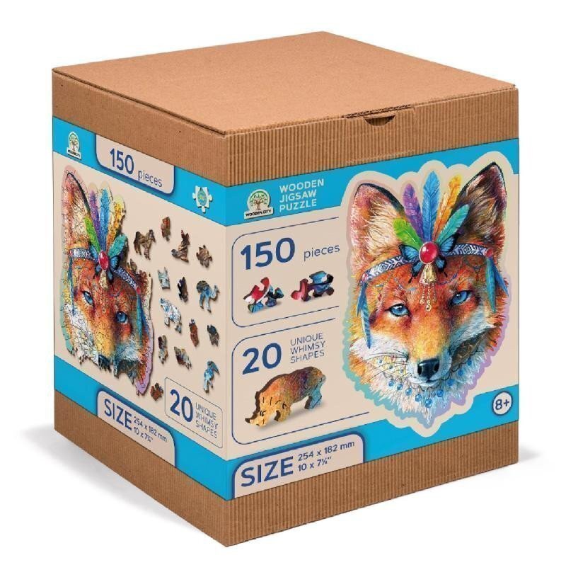 jako drobné figurky. Skládání puzzle s různotvarými dílky je obtížnější a představuje větší výzvu, než skládání klasického puzzle. Puzzle je navíc oboustranné, skládat můžete jak podle obrázku (lícová strana), tak podle tvaru (rubová strana se vzorem). Značka WOODEN