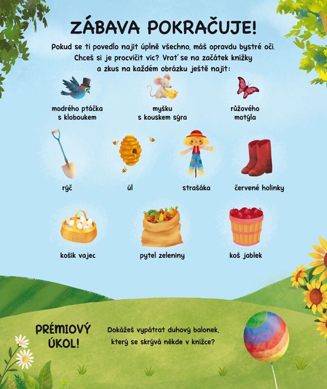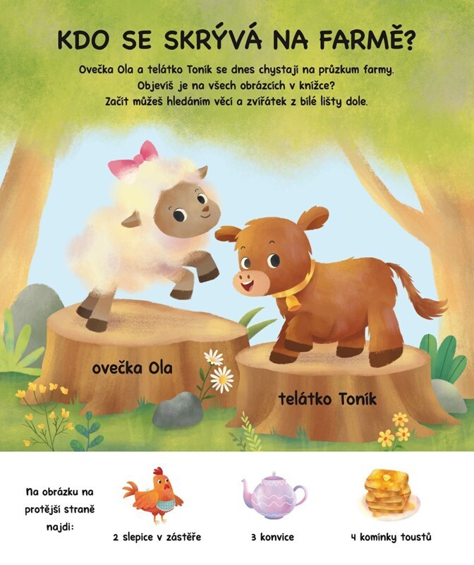 Chceš si procvičit postřeh, paměť a ukázat, jak umíš počítat? Podívej se s Olou a Toníkem na farmu a pomoz jim najít všechny věci poschovávané v obrázcích. Na jejich potrhlém výletě za zvířátky tě čeká celkem 501 věcí k hledání a to už je pořádný kopec zábavy.