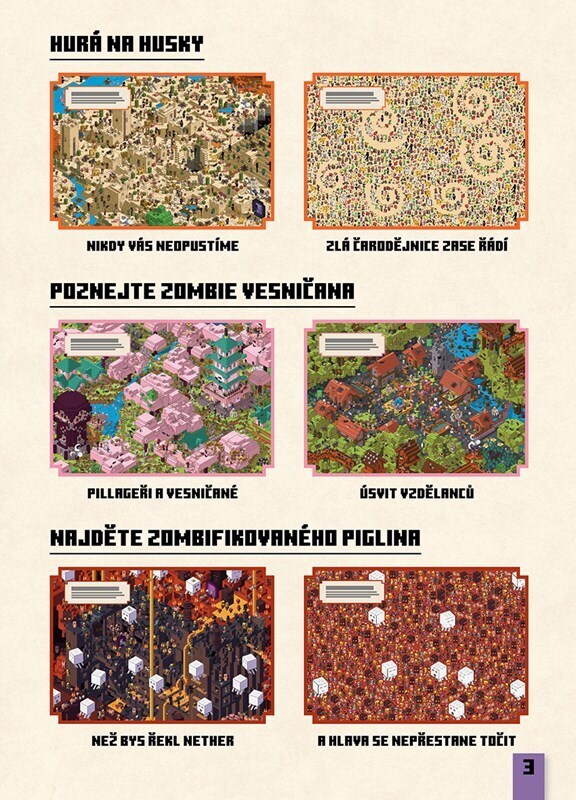 Slyšeli jste to ZAÚPĚNÍ? Tak to byla ohavná zombie někde blízko, ale kde? Cestujte mezi dimenzemi s našimi chaotickými průzkumníky a hledejte s nimi zombie a další moby na neuvěřitelných místech světa Minecraftu.