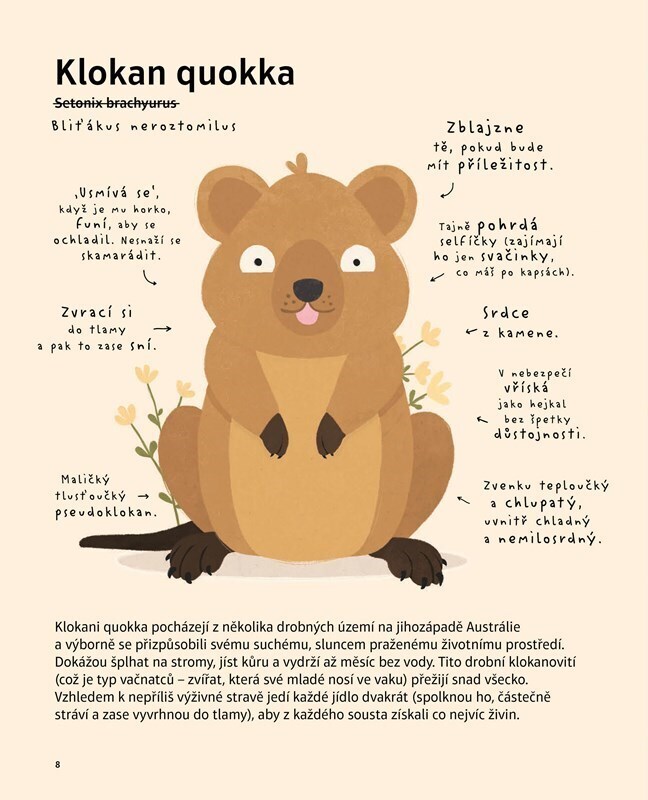 Každý ví, k čemu je dobrá slepice a proč jsou prospěšné ovce. Ale kromě takovýchto tvorů žijí na světě i zvířata, která vypadají, že nejsou vůbec k ničemu. Že když je příroda stvořila, z nudy si házela kostkou, pak se sice trochu zarazila, ale nakonec mávla rukou: "No nic, už to mám hotovo,...