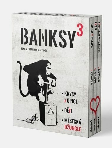 uprchlíků v Evropě. Banksy navíc umí velmi dobře pracovat s pozorností světa médií a sociálních sítí, o čemž svědčí fakt, že dodnes není přesně známá jeho identita, byť jeho graffiti někdy viděl skoro každý. Výpravný box nabízí tři knihy s Banksyho