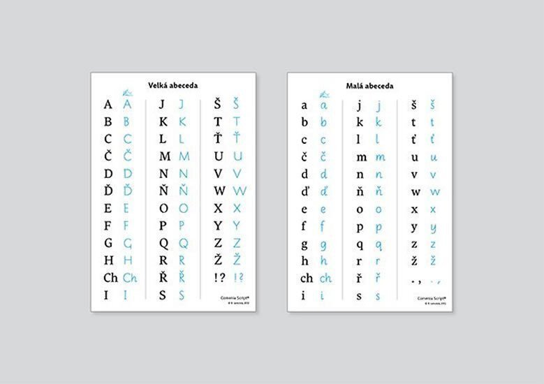Tabulka s abecedou Comenia Script