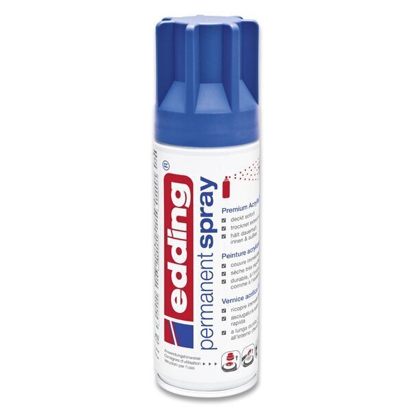 200 ml. Pro dosažení nejlepších výsledků na savých površích (jako např. dřevo, plátno, tapeta), potahových plastových součástech nebo polystyrenu, používejte pouze s podkladovým sprejem značky edding určeným na plasty, na polystyren nebo se sprejem pro univerzální
