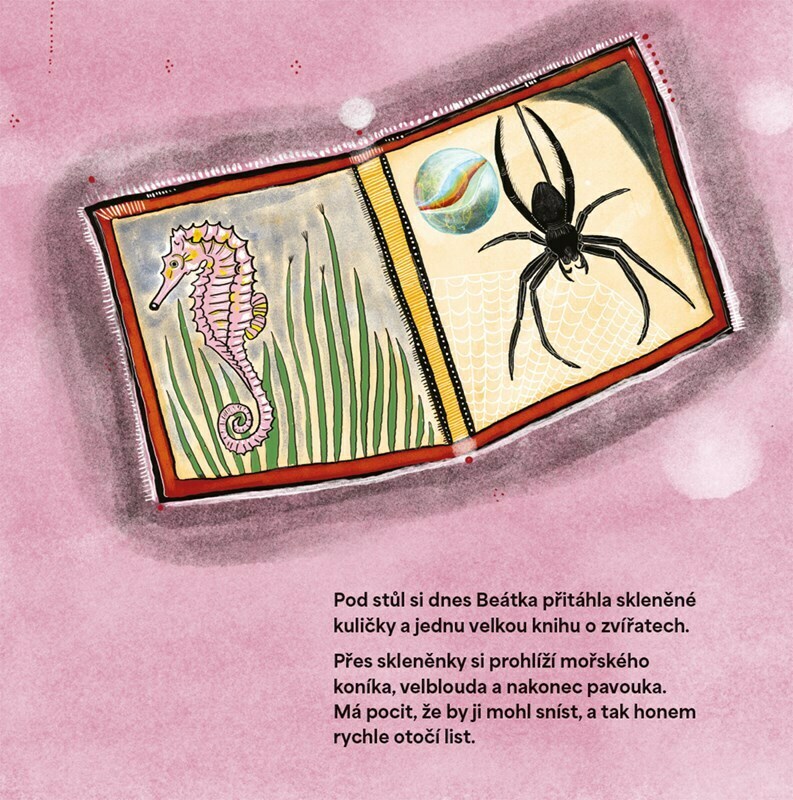 Básnířku Alžbětu Johanku Petrovou inspiroval vlastní zážitek, když se půl roku po porodu dcery na chvilku znovu ocitla v břiše svojí maminky, a napsala příběh pro děti o malé Beátce, která se tam také na chvilku vrátí… Jaké to asi bylo v břiše u mámy, tam, kde jsme vznikli? Něžnou intimní...