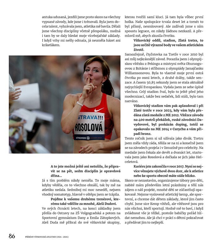 Vítejte v mozaice vzpomínek lidí, kteří psali historii ostravské i světové atletiky. Dotkněte se nejniternějších pocitů a zážitků legend, ale i žen a mužů, kteří stáli v pozadí každodenní práce vítkovického klubu a Zlaté tretry. Helena Fibingerová, Taťána Netoličková, Denisa Rosolová, Jaroslav...