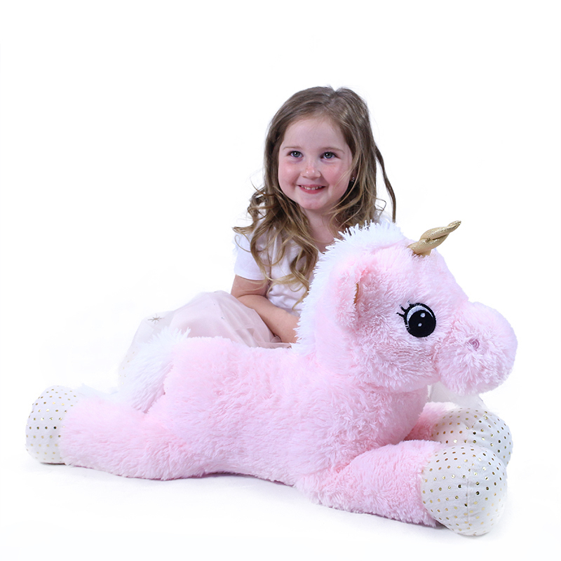 Nádherný plyšový jednorožec ve velikosti 70 cm je vyroben z kvalitní jemné plyše. Jednorožec je v růžové barvě, má zlatý roh i tlapky, hříva a ocas jsou sněhově bílé. Ideální dárek pro malé i velké! Vhodné pro děti od 0 let.
