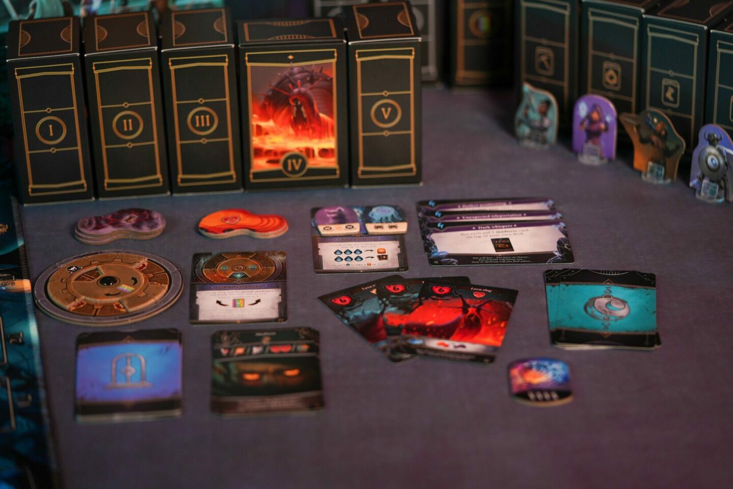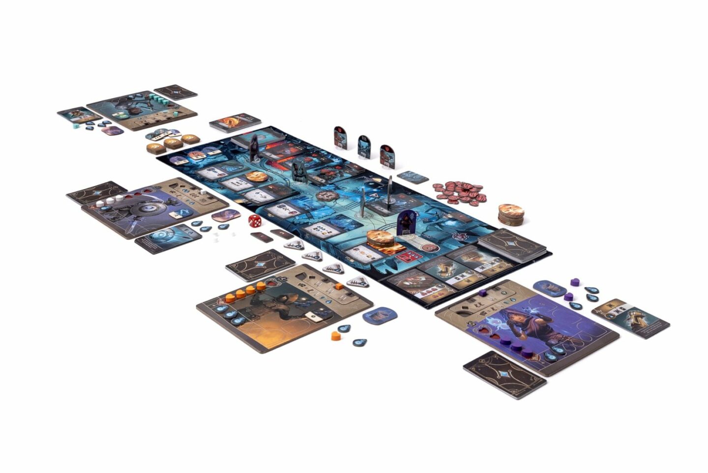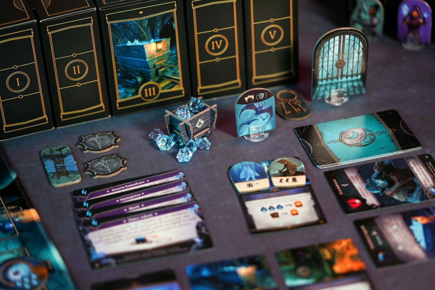 žetonů duchů 8 stupnic dovedností 12 krabiček 21 žetonů poškození příšer 53 žetonů doplňků 1 vozík 1 starověký ciferník 1 kostka Česká pravidla Kniha kapitol 4 žetony jednorožců (mini rozšíření pro hru Kroniky Avelu).