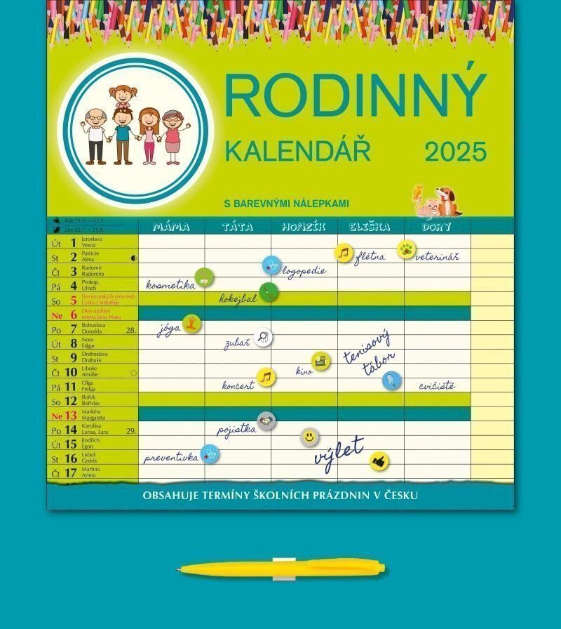 Kalendář 2025 Rodinný s perem, nástěnný, 33 x 37 cm