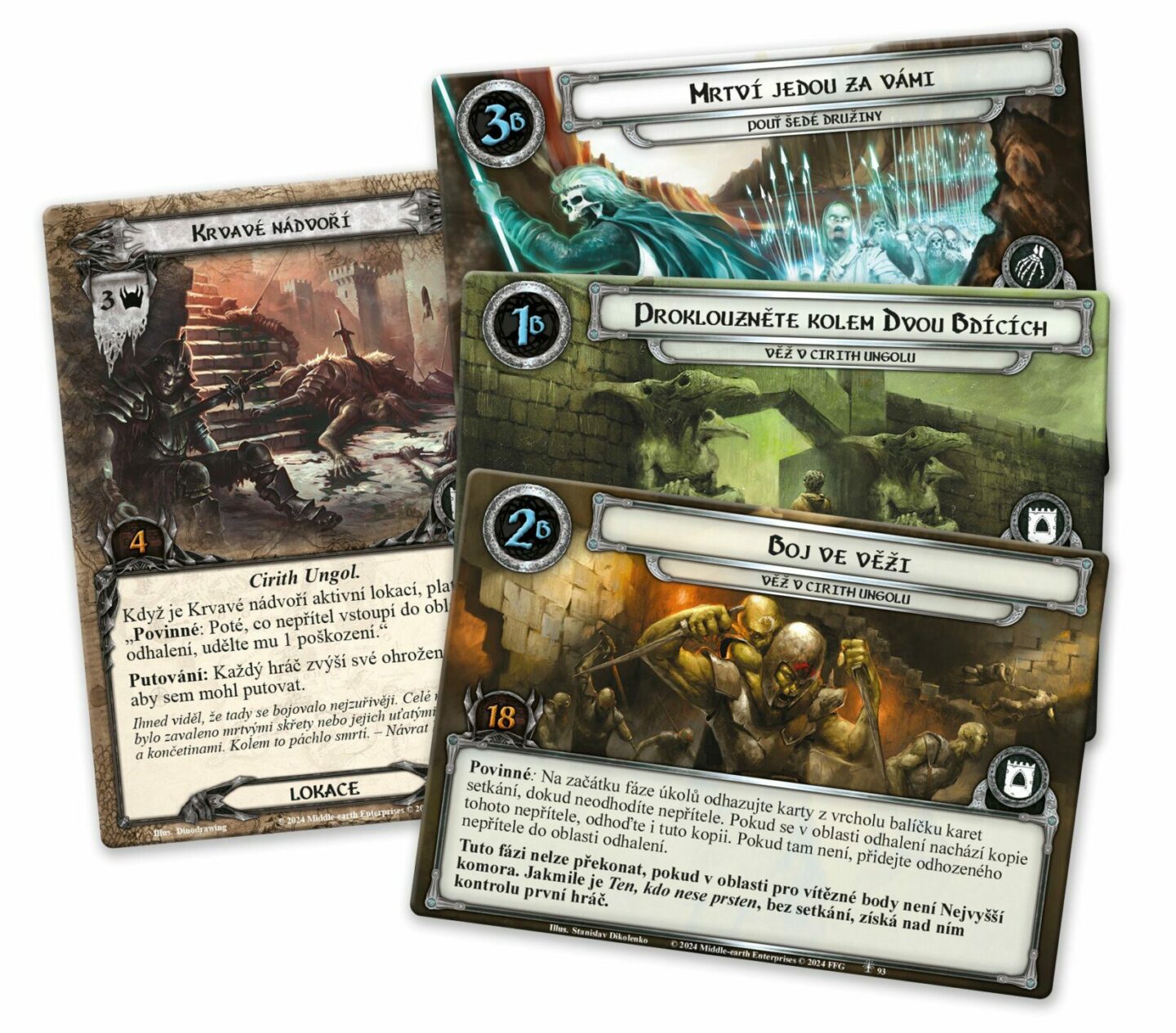 dobrodružstvími z třetího románu legendární ságy J. R. R. Tolkiena Pán prstenů. Toto rozšíření navíc obsahuje více než 60 karet hrdinů a herních karet, které lze použít k sestavení nebo vylepšení herních karetních balíčků pro kterýkoli scénář či kampaň Pán