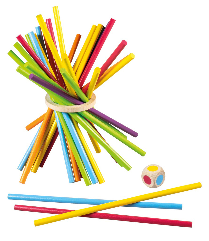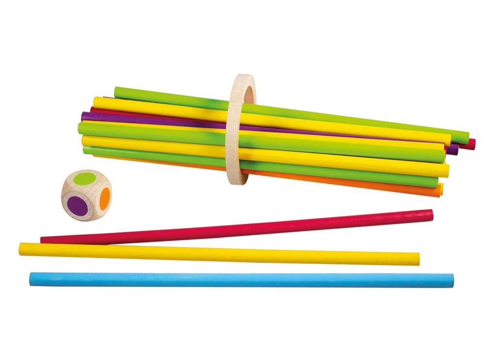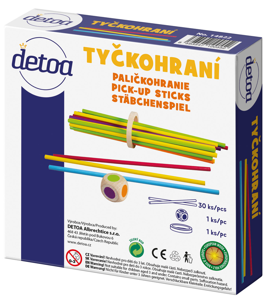 Chcete si zahrát mikádo trochu jinak? Tyčkohraní je hra na procvičení barev a jemné motoriky. Hoďte kostkou a vytáhněte tyčku stejné barvy tak, aby se dřevěné kolečko nedotklo stolu. Obsah balení je 30 ks barevných tyček, 1 hrací kostka, 1 dřevěný kroužek. Varování: nevhodné pro děti do 3 let....