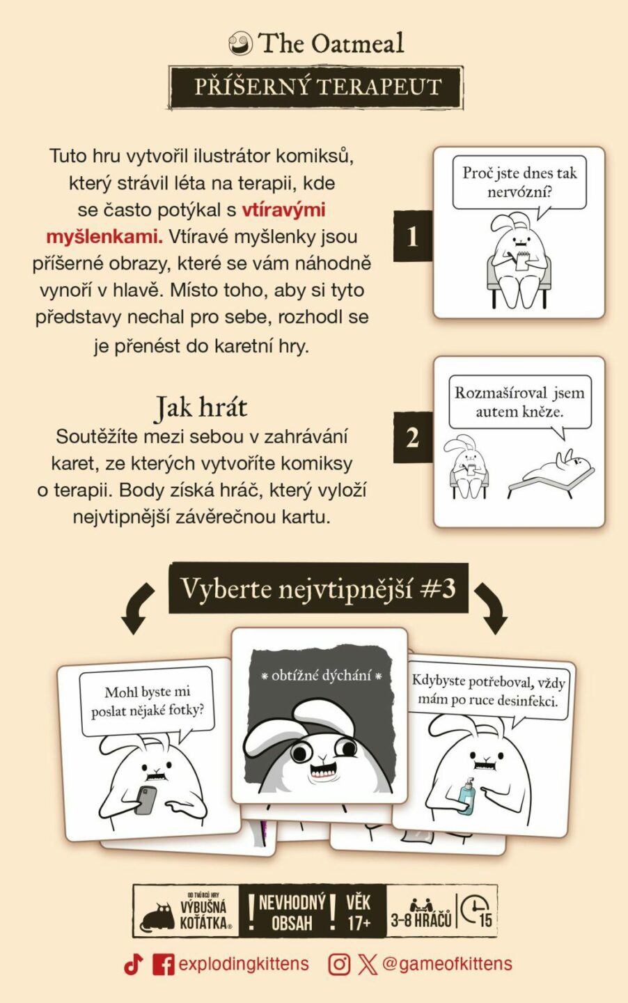 Tuto hru vytvořil ilustrátor komiksů The Oatmeal, který strávil léta na terapii, kde se často potýkal s vtíravými myšlenkami. Vtíravé myšlenky jsou příšerné obrazy, které se vám náhodně vynoří v hlavě. Místo toho, aby si tyto představy nechal pro sebe, rozhodl se je přenést do karetní hry. Ve...