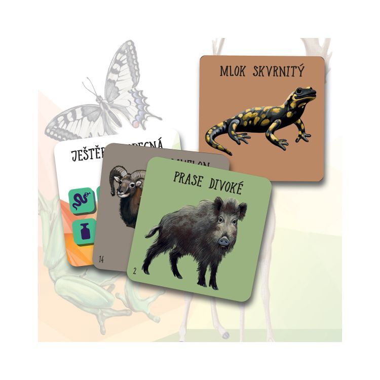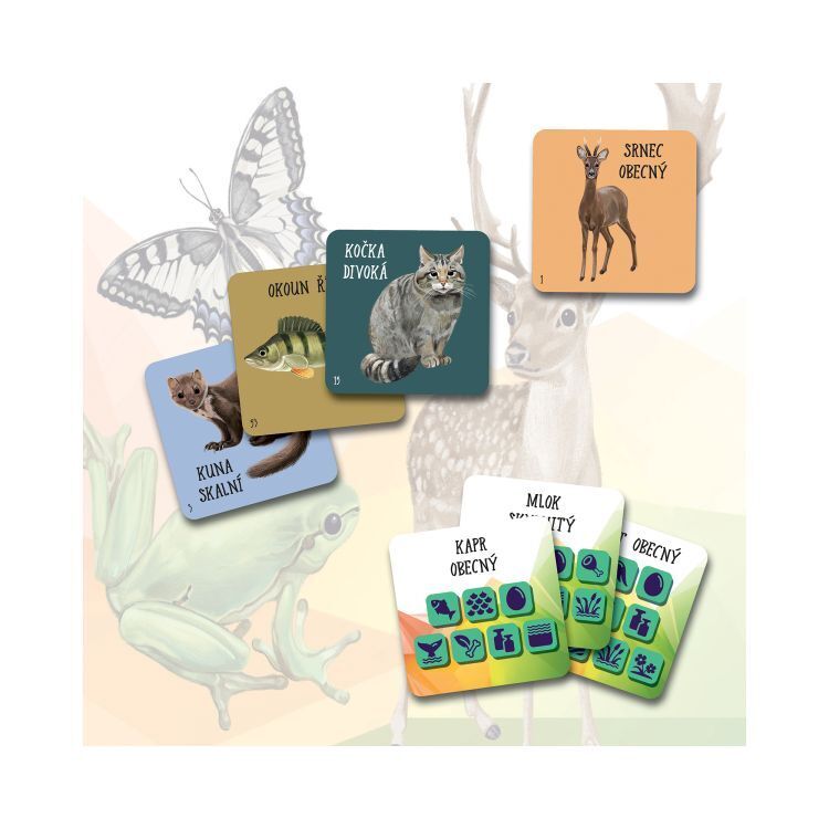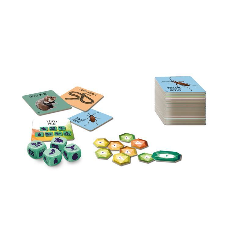 Vědomostně-postřehová hra s kostkami, ve které se hráči snaží co nejrychleji vybrat kartičku, která odpovídá parametrům hozeným na kostkách. Hra obsahuje: 4 barevné kostky s ikonami, 60 kartiček s českými zvířaty, 54 výherních žetonů a pravidla.